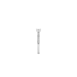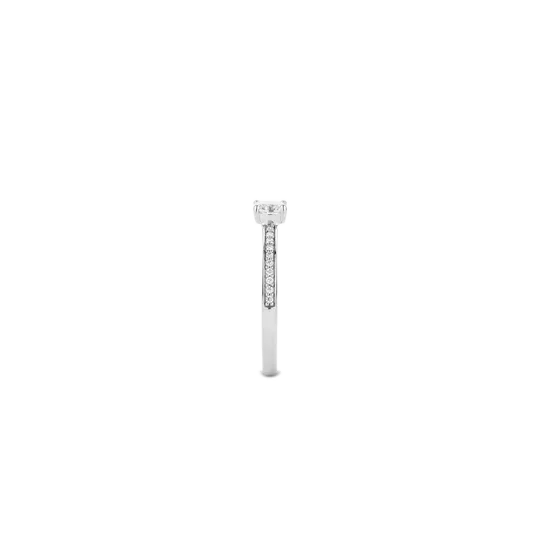 A zircônia maior é cravejada em um aro solitário para um brilho extra.