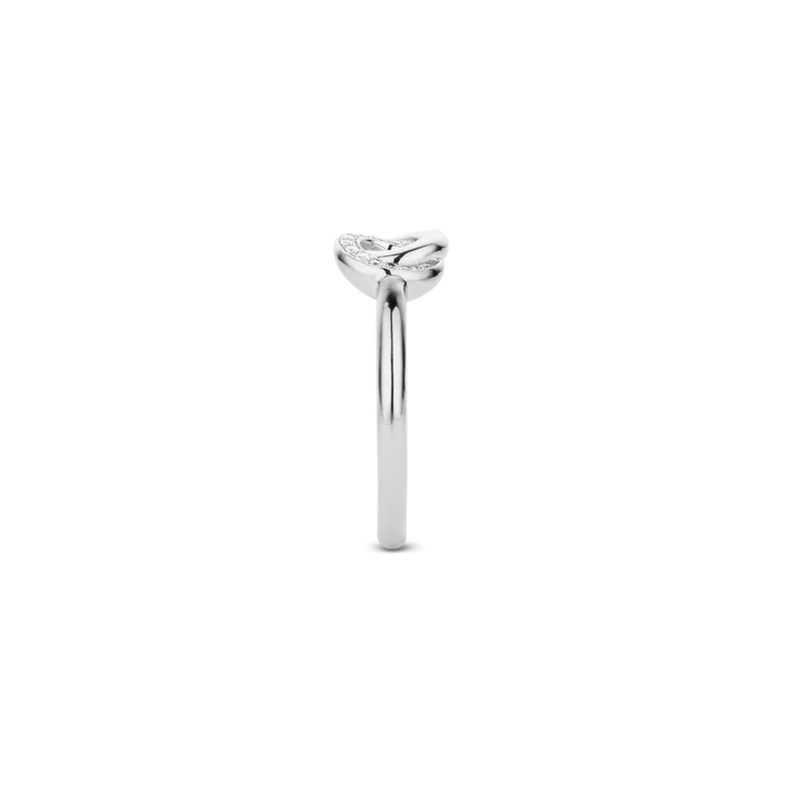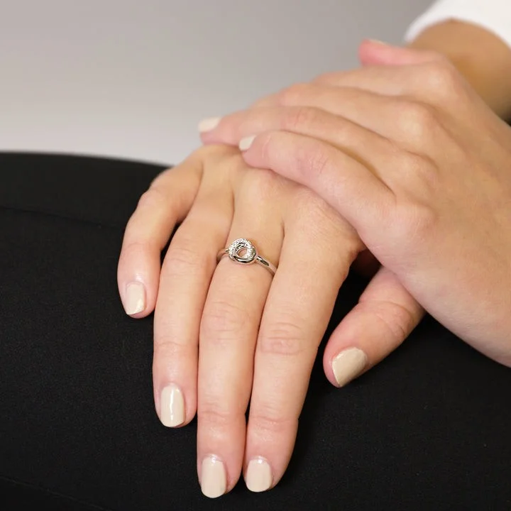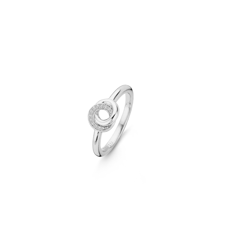 O design circular infinito entre a prata e os brilhantes torna a peça delicada e elegante.