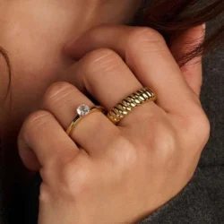Anel com um toque dourado irresistível, destaca-se pela sua elegância moderna e brilho sofisticado.