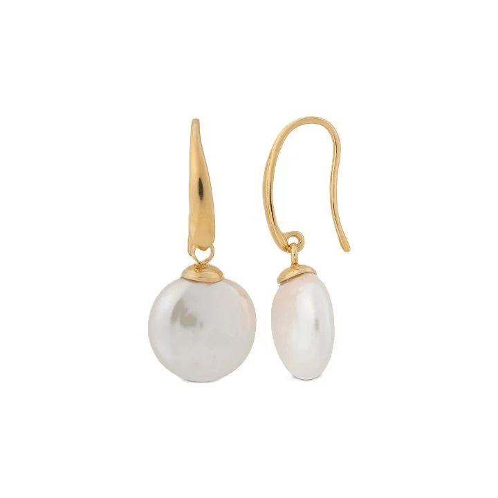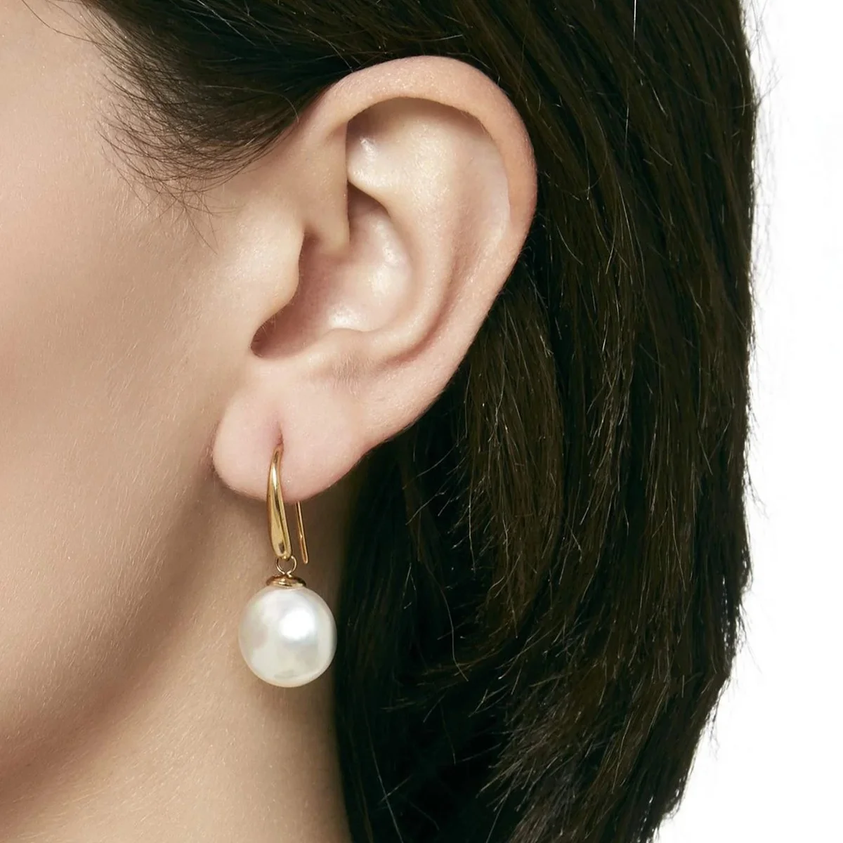 Brincos curtos de gancho, com pérolas brancas em formato de losango de 12 mm.