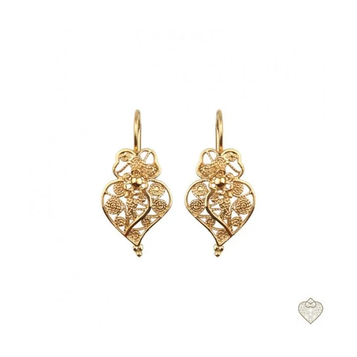 Brincos elegantes inspirados no design tradicional da filigrana portuguesa, criados para realçar a beleza com sofisticação sutil.