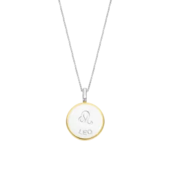 Este colar do signo leão é uma peça versátil e delicada, perfeita para ser usada sozinha ou com pingentes da coleção. Combinação perfeita entre o brilho suave do madrepérola, a zicórnia e o tom dourado.