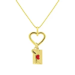 Colar composto por uma malha com pequenas esferas e com um aro central em formato de coração.