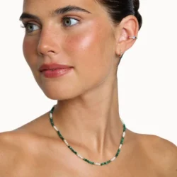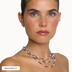 Colar composto por pedras naturais coloridas intercaladas com pequenas esferas em prata.