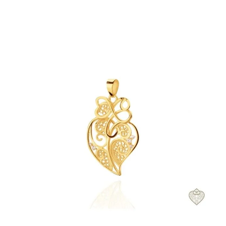 Pendente com inspiração no design tradicional de filigrana portuguesa, ideal para destacar o visual com um toque distinto. Detalhes cuidadosamente trabalhados que captam a luz e acrescentam um brilho subtil, com pequenas pedras de zicórnia. Possível de aplicar numa corrente ou fio à escolha, tornando-o versátil e adaptável a diferentes estilos.