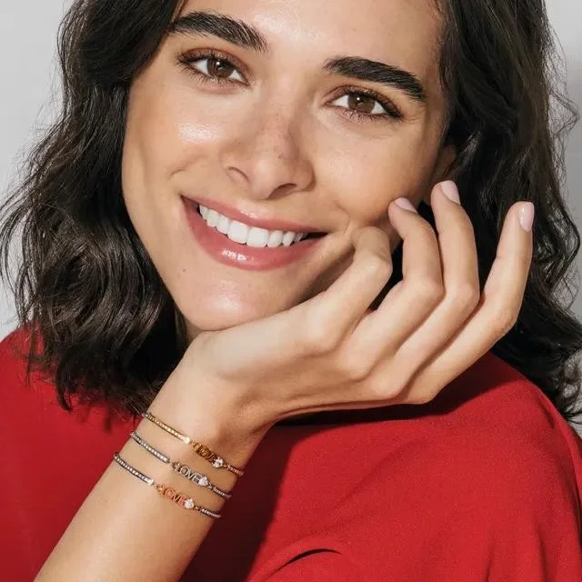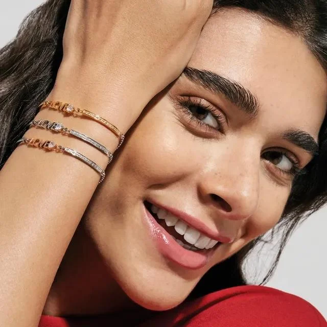 Pulseira hipoalergénica, com a palavra LOVE e um coração com uma zircónia branca.